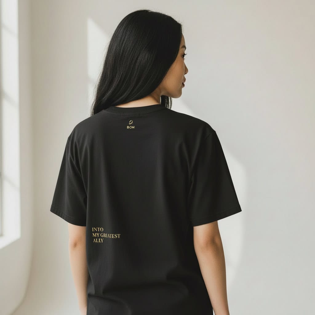 It’s a long name because it was a long war. It’s embroidered on both sides because this truth isn’t something you whisper, it’s something you wear. Every time you put this on, you’re making a declaration: the war is over. I made peace. You’re not just wearing a t-shirt. You’re wearing proof that you survived the hardest battle. The one inside your own mind.
