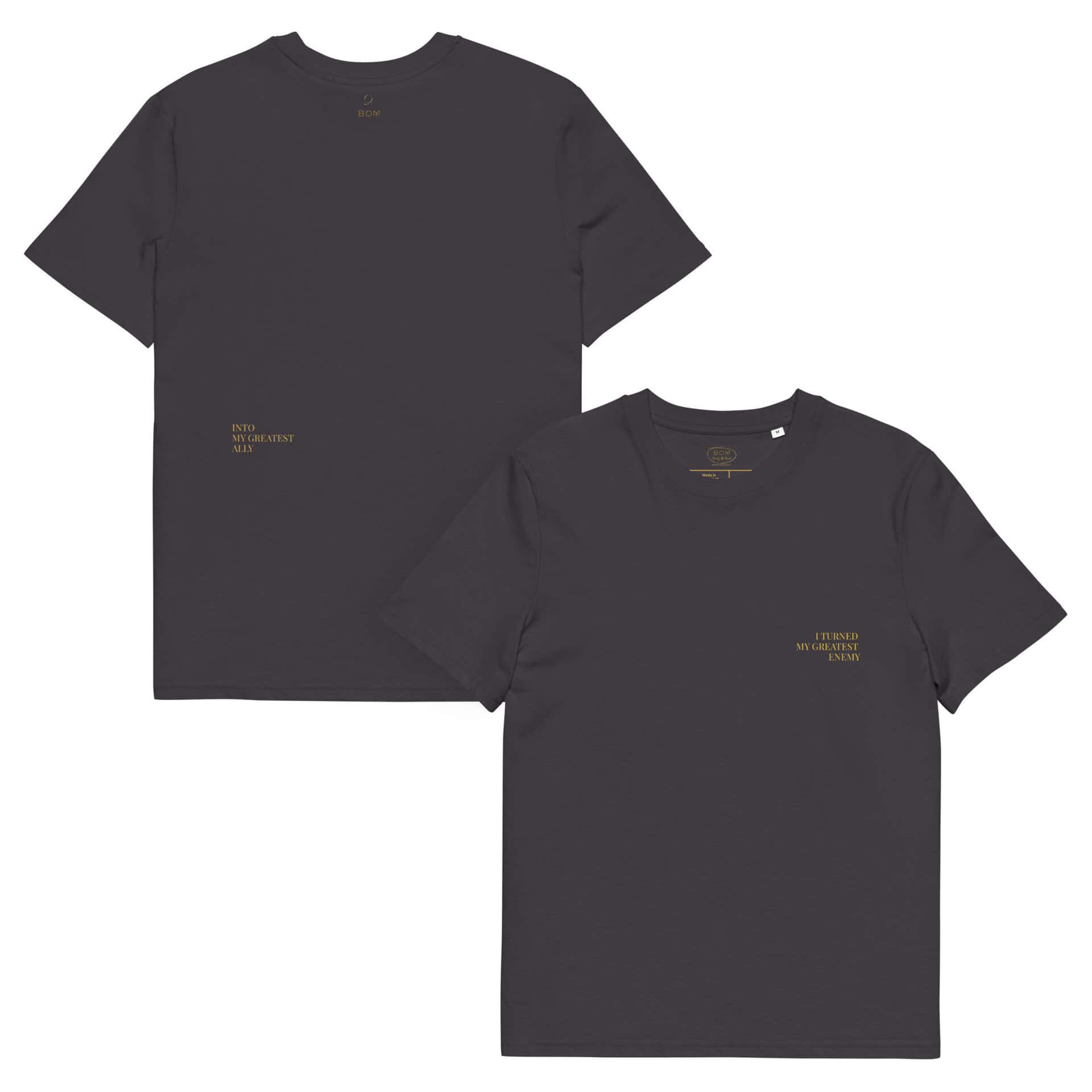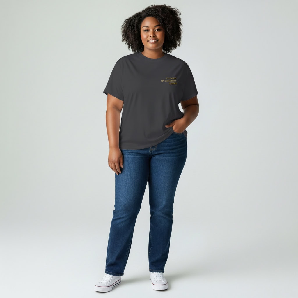 It’s a long name because it was a long war. It’s embroidered on both sides because this truth isn’t something you whisper, it’s something you wear. Every time you put this on, you’re making a declaration: the war is over. I made peace. You’re not just wearing a t-shirt. You’re wearing proof that you survived the hardest battle. The one inside your own mind.